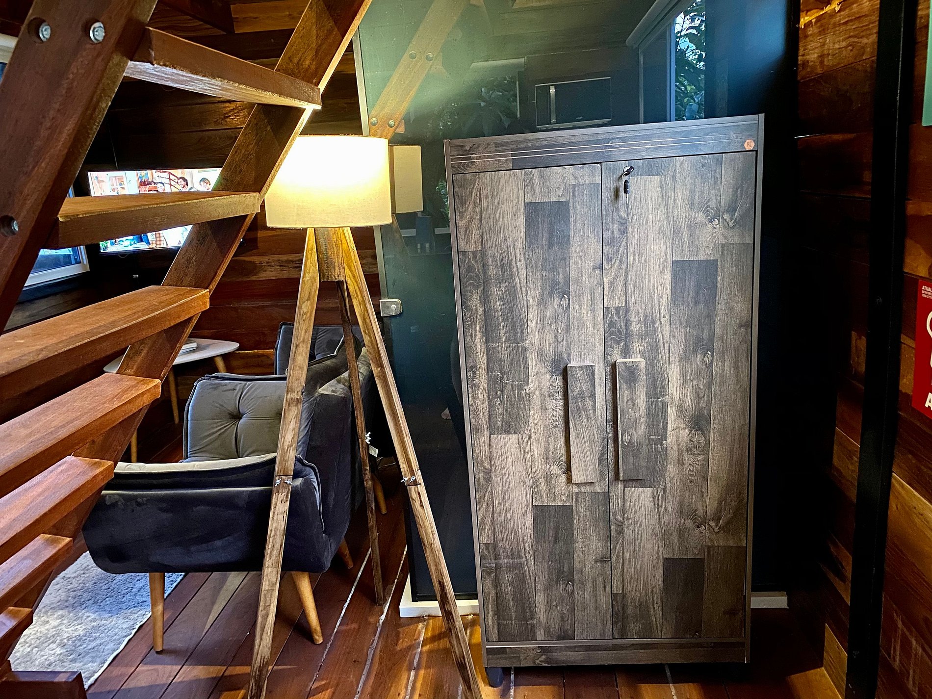 Com capacidade para duas pessoas, a Ayla é construída em madeira de eucalipto tratado e ipê-roxo, unindo sofisticação, aconchego e durabilidade. Distribuída em dois pavimentos, a casa conta com: