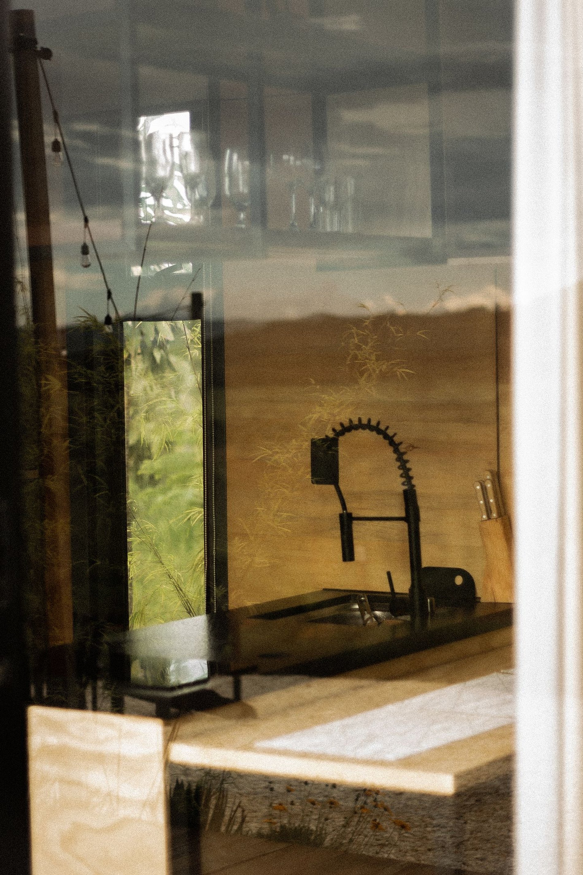 Cada elemento foi cuidadosamente desenhado para acolher com intenção. A cama se abre para a paisagem, permitindo que o dia comece com luz e imersão. A cozinha convida à delicadeza dos gestos simples — preparar, servir, partilhar. O deck, voltado para o céu e para o horizonte, é abrigo para pausas, leituras ou uma sequência suave de yoga, pilates e massagens ao amanhecer.