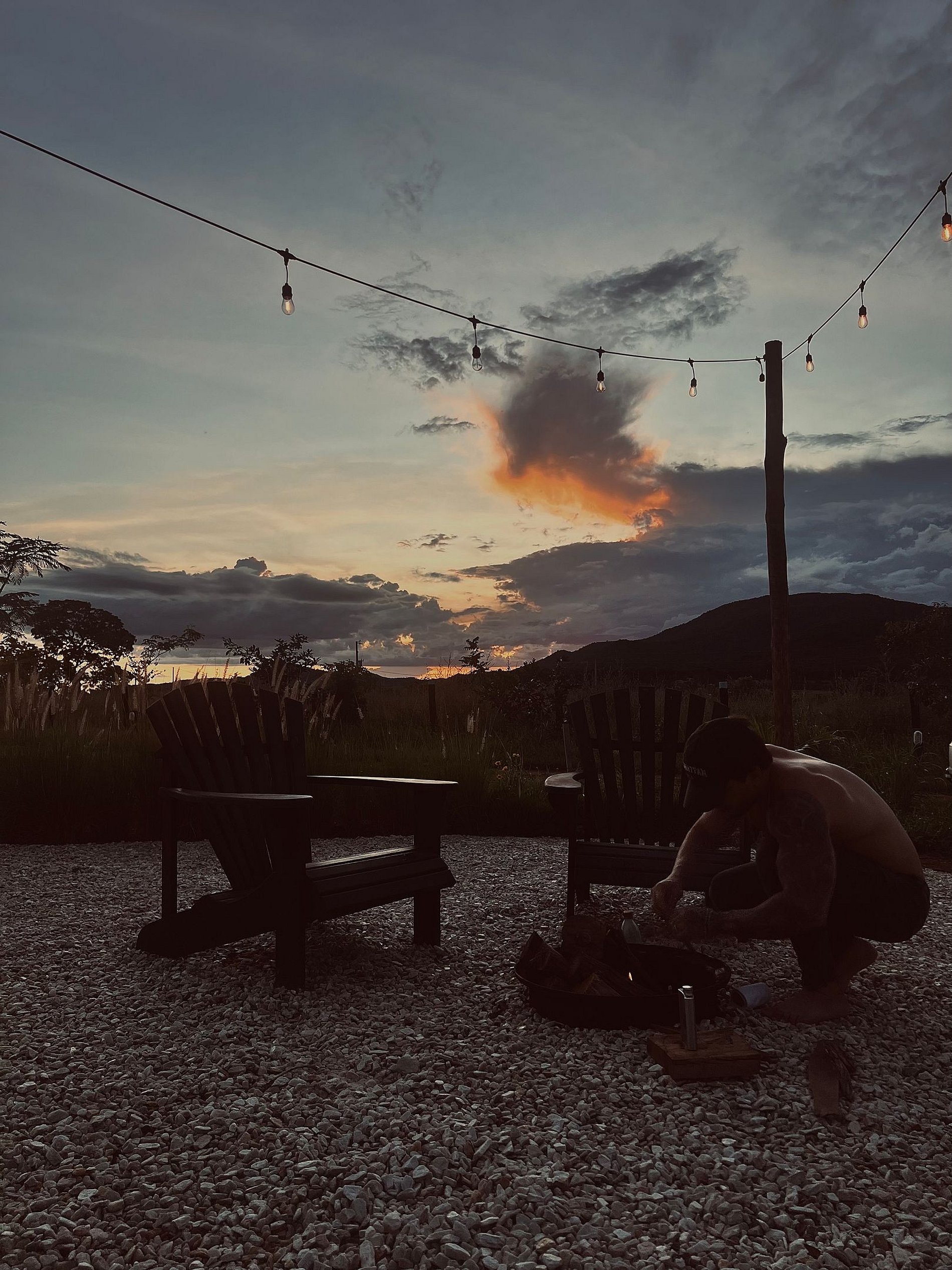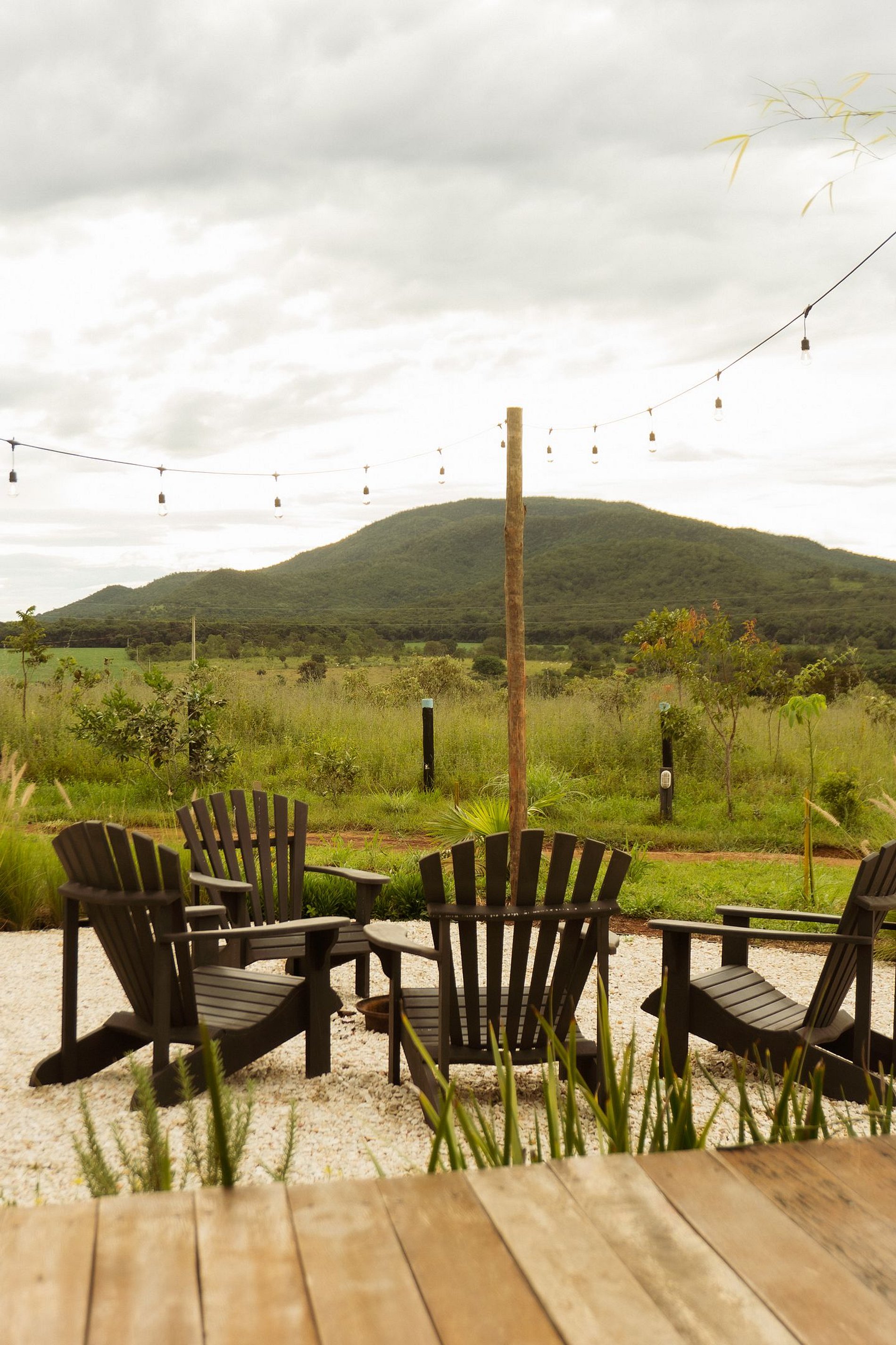 Durante o dia, o olhar se perde entre as serras e o céu em constante mudança. À noite, o ofurô convida ao silêncio, enquanto o crepitar da fogueira embala conversas lentas, taças de vinho e as notas suaves de um violão em seresta — como um pequeno luau sob as estrelas. São tantas possibilidades de contemplação.