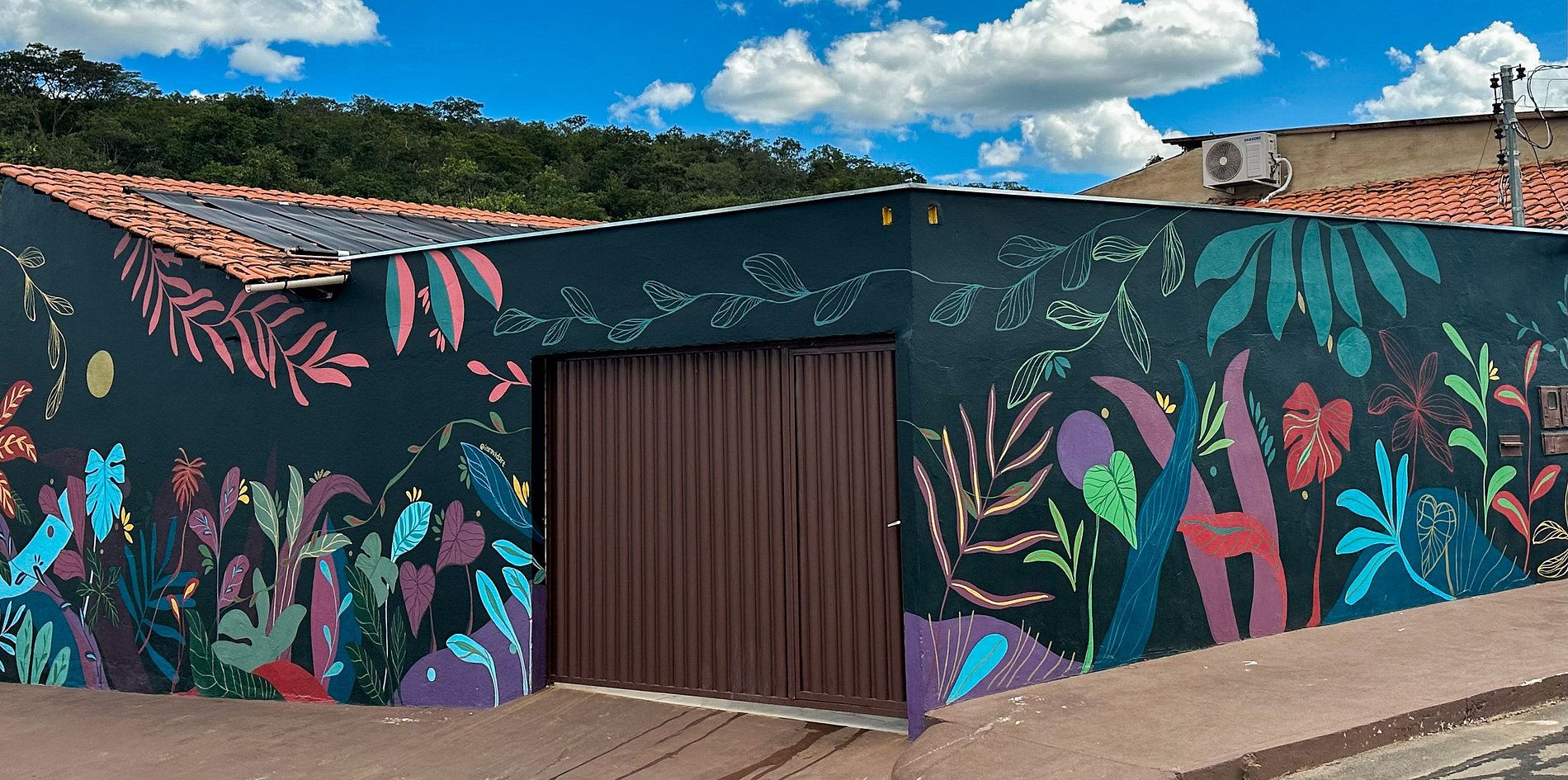 A casa Jardim Babilônia Residence oferece uma experiência de hospedagem em Pirenópolis, onde arte muralista e sustentabilidade se unem para proporcionar lazer e conforto. Com capacidade para até quatro pessoas, possui dois quartos acolhedores, a casa se destaca pelo seu mural externo vibrante e pela decoração inspirada nos Jardins Suspensos da Babilônia, criada pela artista plástica Iara Vasconcelos e Melo. Os murais evocam o Cerrado e a Mata Atlântica, remetendo à natureza exuberante.