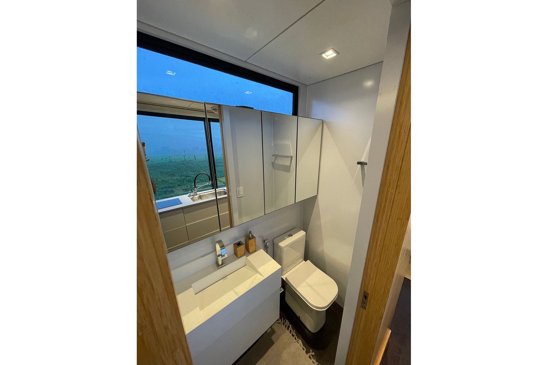 Uma tiny house feita com container, que possui um telhado verde, um deck móvel com mesa e camas retráteis e um cinema a céu aberto. Conceito sustentável e minimalista. Explore esse modo simplificado de viver em meio a natureza exuberante do cerrado goiano. Com uma vista linda da montanha e a poucos minutos do centro histórico.