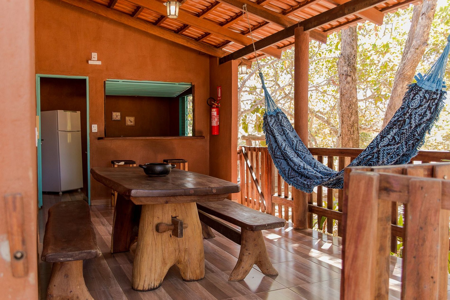 É proibido fumar no interior da casa. Nas áreas de uso privativo de cada casa (abertas) e nas áreas (compartilhadas) é permitido fumar desde que respeitando o distanciamento dos demais clientes.