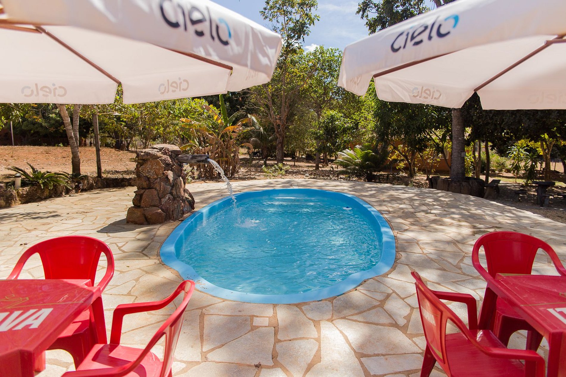 A piscina possui aproximadamente 7 x 3 metros e 1,4m de profundidade. O tratamento da água é realizado semanalmente, com cloro, e reforçado no período em que estiver sendo utilizada. Não dispomos de salva vidas, portanto, solicitamos atenção, especialmente, com as crianças. Não é permitida a permanência de menores desacompanhados de seus responsáveis. Área aberta.
